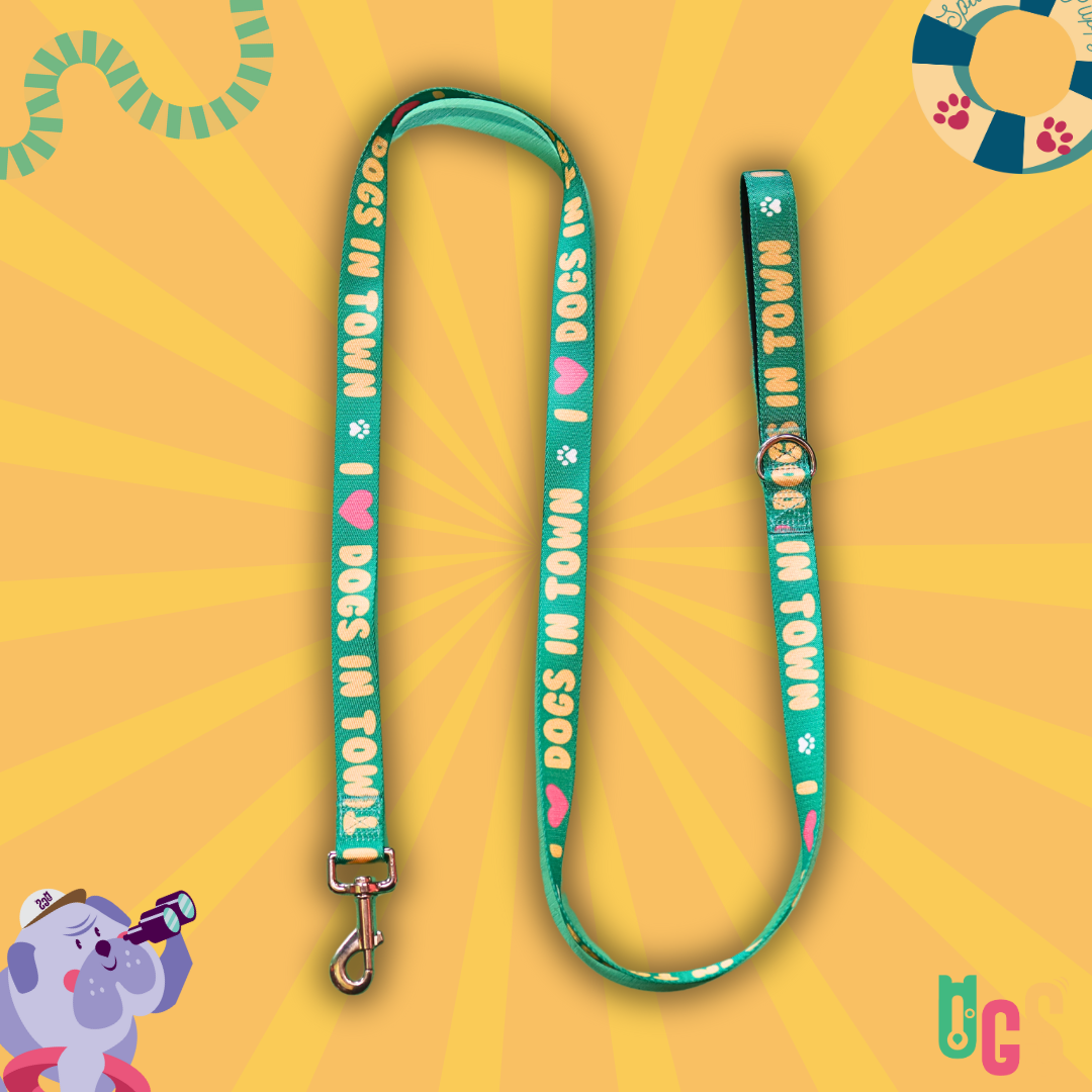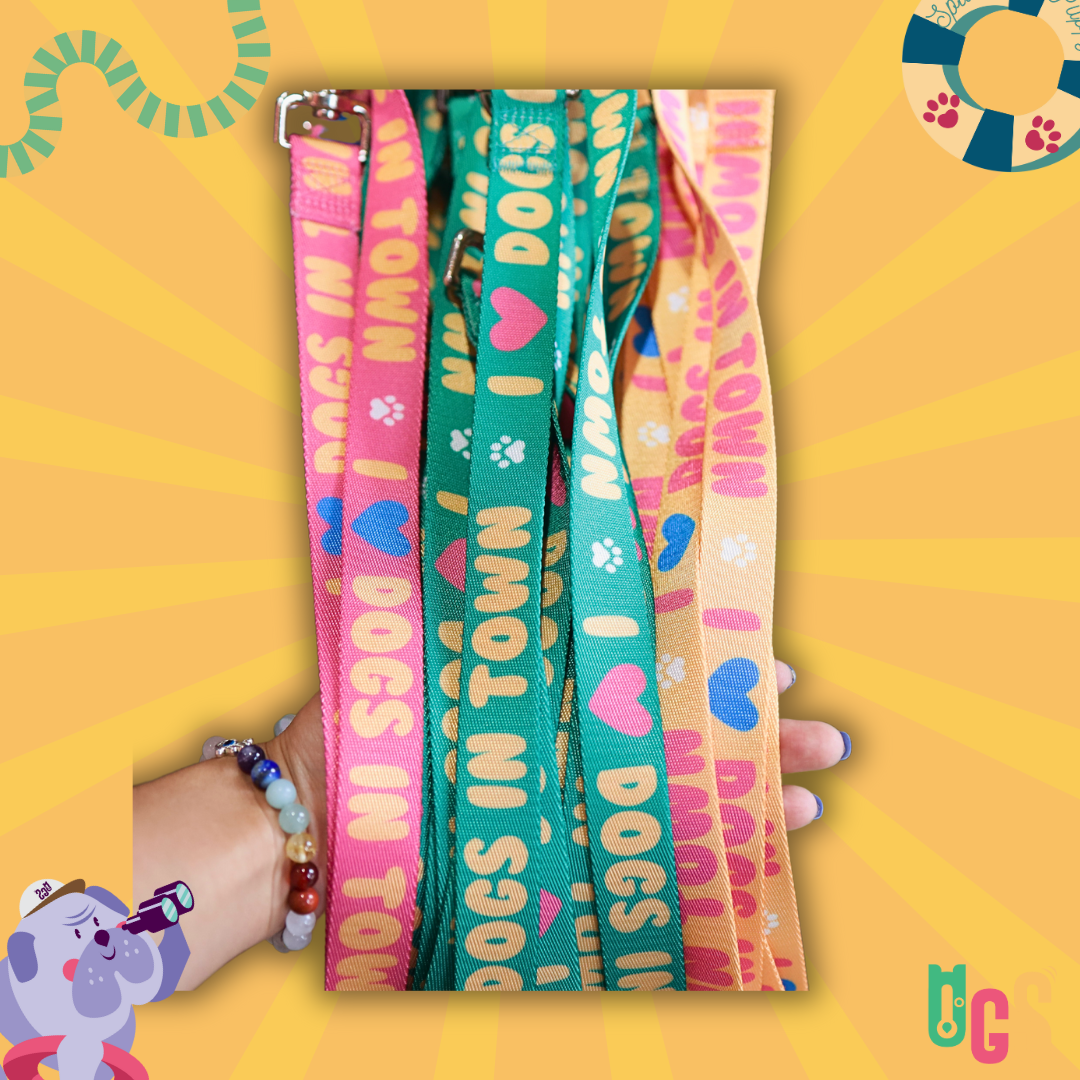 ¡El accesorio imprescindible para tu amigo peludo! Disponible en rosa, amarillo y verde, esta correa añade un toque de color a tus paseos diarios. Con nuestro icónico logo Dogs in Town, no es solo una correa, ¡es una declaración de estilo y diversión!