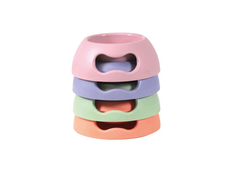 El Pappy Bowl está fabricado con plástico reciclado de alta calidad, muy resistente a mordiscos, y cuenta con pies de goma antideslizantes para mantenerse siempre en su sitio. Además, es apto para lavavajillas y microondas.